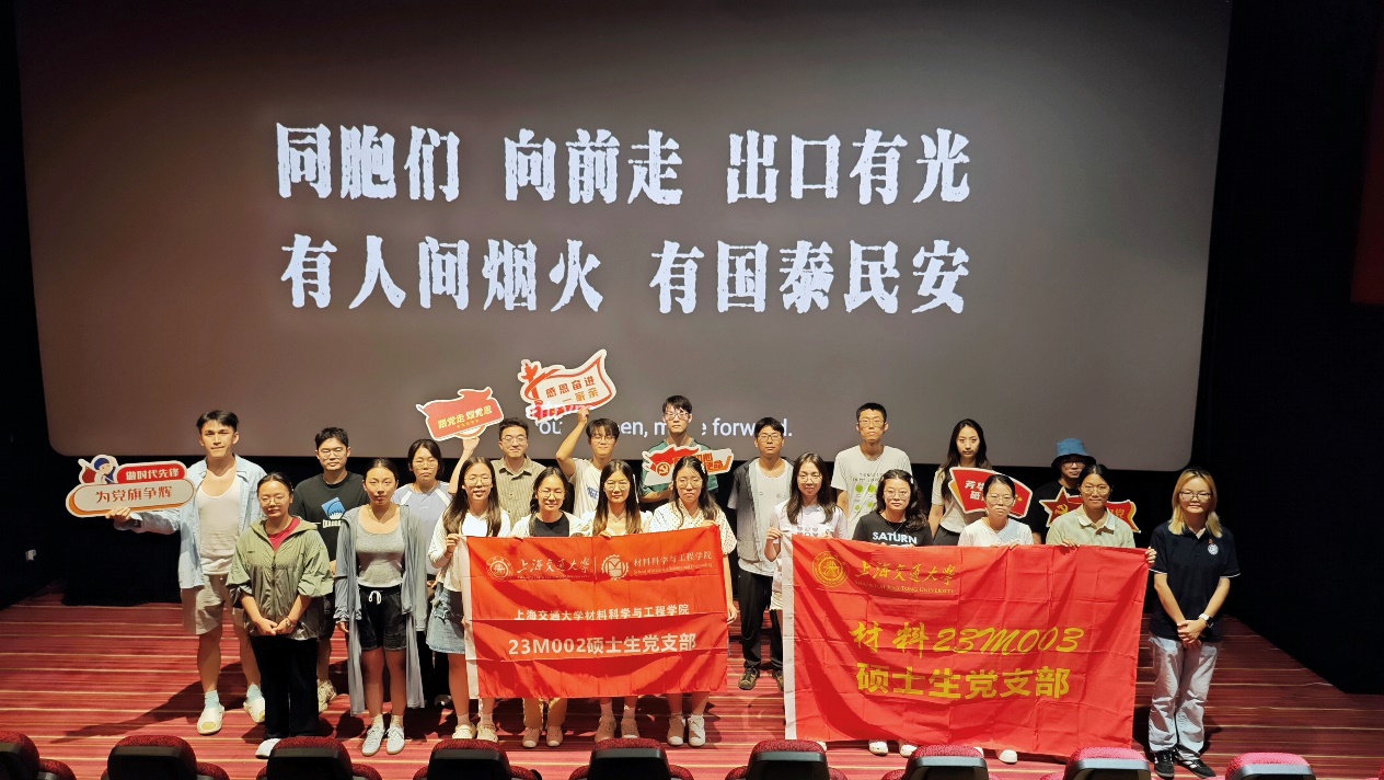 材料23M002与23M003硕士生党支部将以此次观影为新的起点,传承红色基因,弘扬爱国精神,以先辈为榜样坚定理想信念,在学习中刻苦钻研、在实践中砥砺前行,厚植家国情怀,勇担时代重任。