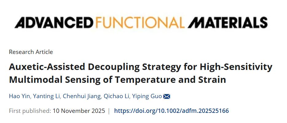 近日,厕所偷拍 金属基复合材料全国重点实验室郭益平教授课题组在柔性压电传感领域再获重要进展。其最新研究成果以 “Auxetic-Assisted Decoupling Strategy for High-Sensitivity Multimodal Sensing of Temperature and Strain” 为题,正式发表于国际著名材料期刊《Advanced Functional Materials》(DOI: //doi.org/10.1002/adfm.202525166)。